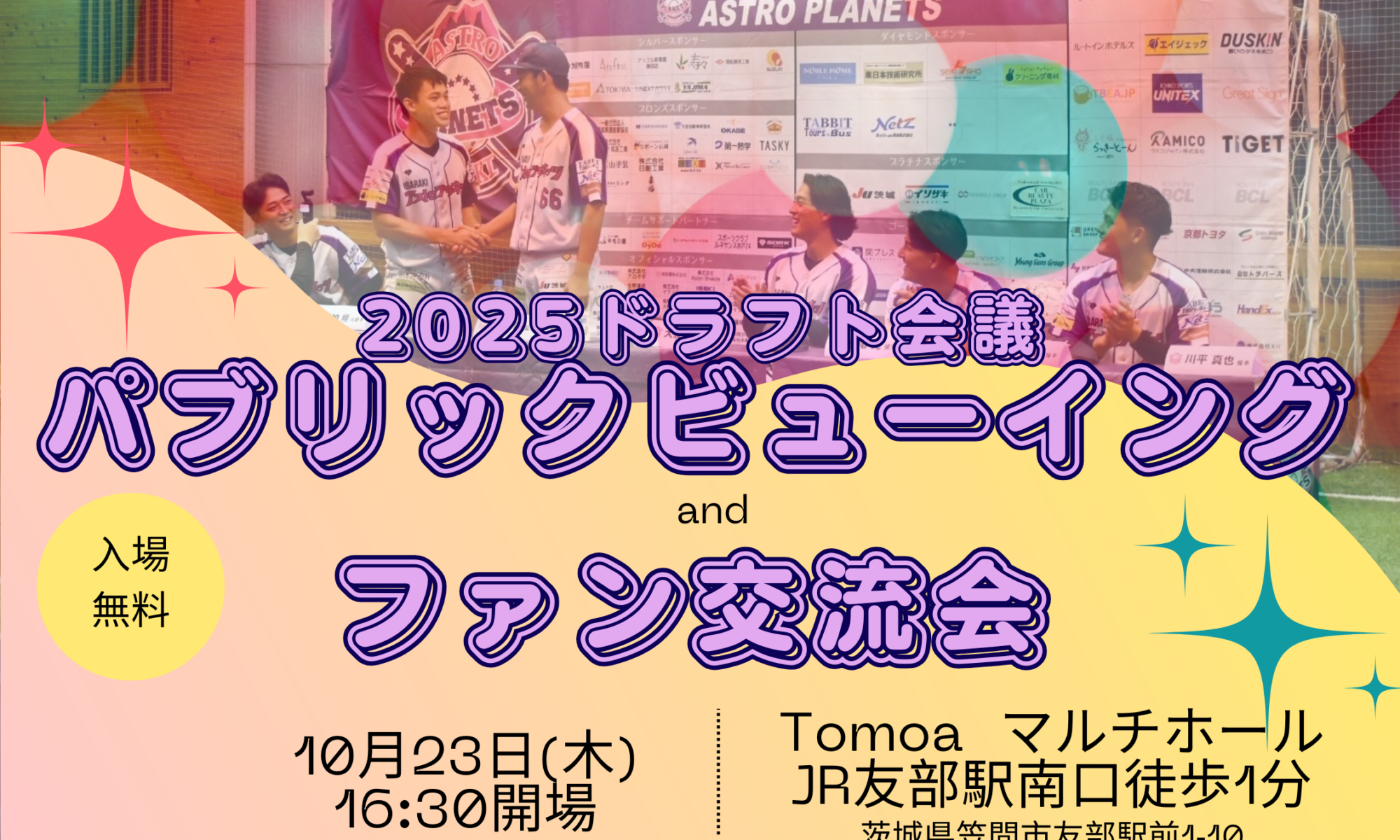 茨城アストロプラネッツは、ファンの皆さんへ感謝を伝える交流会とNPBドラフト会議のパブリックビューイ […]