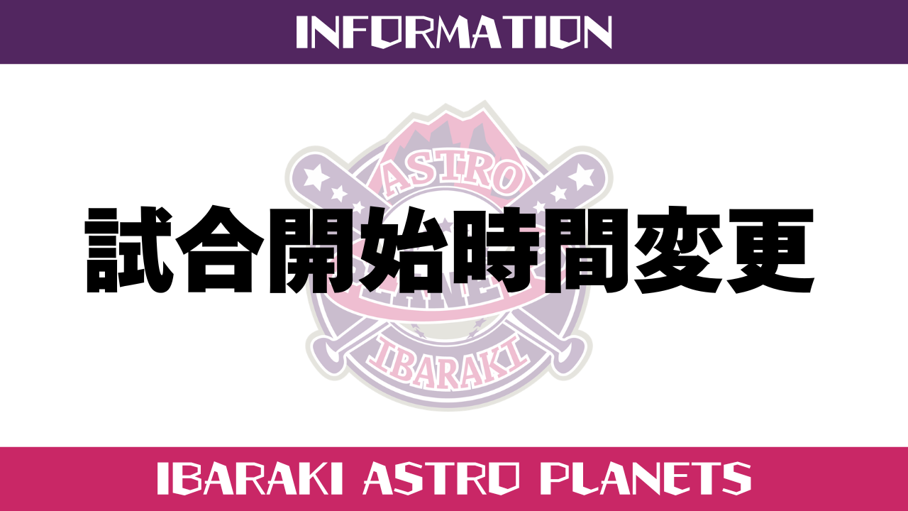プロ野球独立リーグ・ルートインBCリーグ(Baseball Challenge League)の茨城アストロプラネッツは、公式戦の試合開始時間が変更となりましたので、下記の通りお知らせいたします。